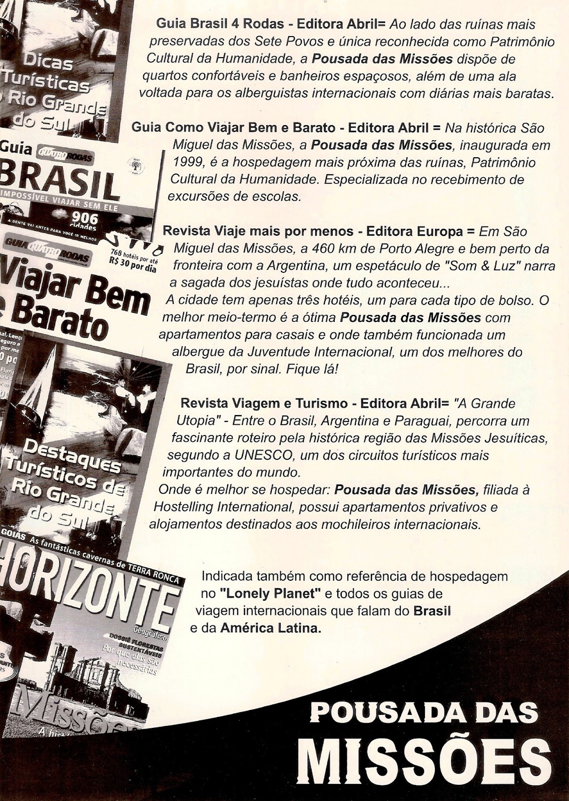 Quem recomenda a Pousada das Missões como hospedagem na região